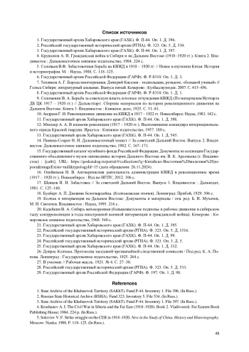 9. Соломеник В. А. Борьба за советскую власть в полосе отчуждения КВЖД (По материалам Истпарта ДБ ЦК 1917 - 1920 гг.) // Дальистпарт. Сборник материалов по истории революционного движения на Дальнем Востоке. Книга 3. Владивосток: Книжное дело, 1925. С. 51-81.