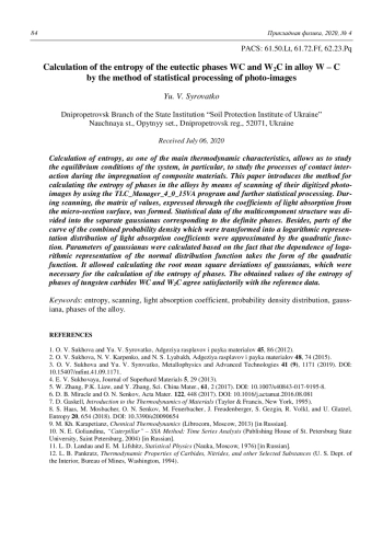 Yu. V. Syrovatko Calculation of the entropy of the eutectic phases WC and W2C in alloy W–C by the method of statistical processing of photo-images 79