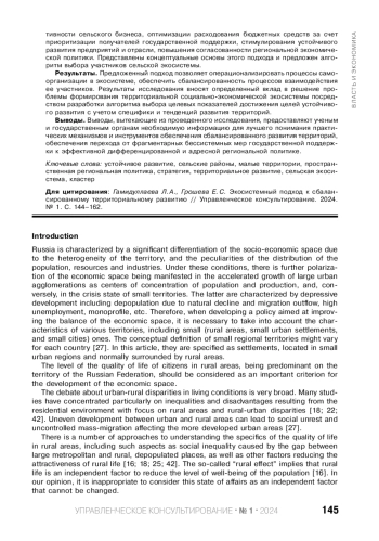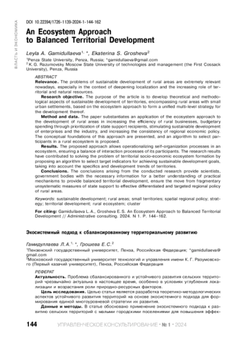 3. Ikonnikova О. Basic approaches to the notion of “sustainable development of rural territories” // Problems of Modern Economics. 2012. N 1 (41). P. 349-352 (in Rus.). EDN: PCGKVP