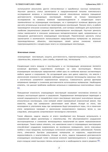 Повышение долговечности используемых материалов является наиболее актуальной задачей в современной сфере архитектуры и строительства. В частности, особенно актуализируется вопрос, связанный с повышением долговечности конструкций путем снижения влияния паропроницаемости и конденсации влаги воздуха. Цель текущей статьи состоит в анализе возможных мероприятий и технических решений, направленных для повышения долговечности ограждающих конструкций путем снижения влияния паропроницаемости и конденсации влаги воздуха. Объектом исследования являются ограждающие конструкции. Предметом исследования является влияние паро-проницаемости и конденсации влаги применительно к ограждающим конструкциям. В работе применяются такие методы научного исследования, как анализ и синтез, а также используются результаты других отечественных и зарубежных научных материалов. Научная ценность статьи заключается в предпринимаемой попытке комплексного исследования вопроса и систематизации знаний относительно вопроса повышения долговечности ограждающих конструкций. Автором не только производится исследование по вопросу влияния паропроницаемости и конденсации влаги применительно на ограждающие конструкции, но и приводятся основные формулы для расчета оптимальных значений при проектировании конструкций. Помимо этого, в работе производится описание основных мероприятий, учет которых необходим для выполнения наиболее рациональных решений при проектировании конструкций. Научная ценность статьи заключается в описании уникальных методологических идей, направленных на повышение долговечности ограждающих конструкций. Практическая ценность статьи заключается в возможности использования представленных материалов на реальных производственных объектах, преследующих своей целью снижение влияния паропроницаемости и конденсации влаги на ограждающие конструкции.