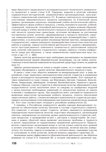 7. Сидорова Н. В. Оценка компонентов образовательной среды вуза (на примере ИРНИТУ) // Социальная компетентность. 2020. Т. 5. № 3. С. 408-418. EDN: NOAIUI