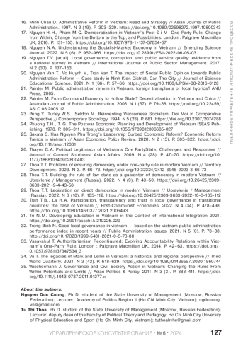 16. Minh Chau D. Administrative Reform in Vietnam: Need and Strategy // Asian Journal of Public Administration. 1997. № 2 (19). C. 303-320. DOI: 10.1080/02598272.1997.10800343