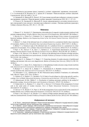 15. Попов А. М., Зиновьев В. Б., Шведов В. Н. Анализ деформированного состояния элементов мостовых конструкций в зоне контакта с нагелями крестообразного сечения // Научные проблемы транспорта Сибири и Дальнего Востока. 2013. № 2. С. 101-104. EDN: RSMOWB