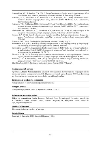 5. Деточенко И.В., Бабакова Л.Д., Евсенкова А.А., Котова Е.И. Учим диалоги по дисциплине “Русский язык как иностранный: общее владение”. Ростов-на-Дону, 2020. 40 с.