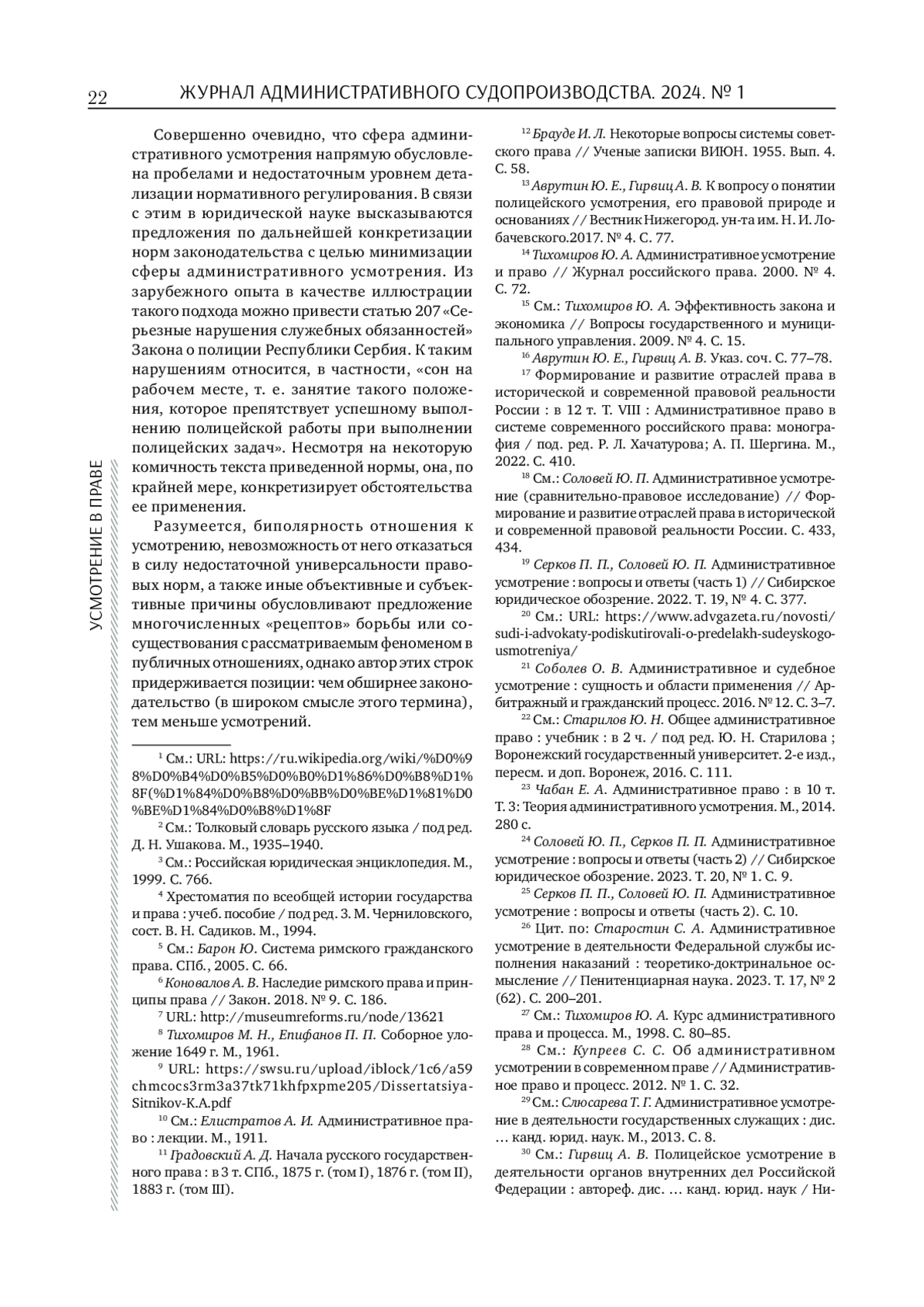 30. Серков П. П., Соловей Ю. П. Административное усмотрение: вопросы и ответы (часть 2) // Сибирское юридическое обозрение. 2023. Т. 20. № 1. С. 10. EDN: NZWFRB