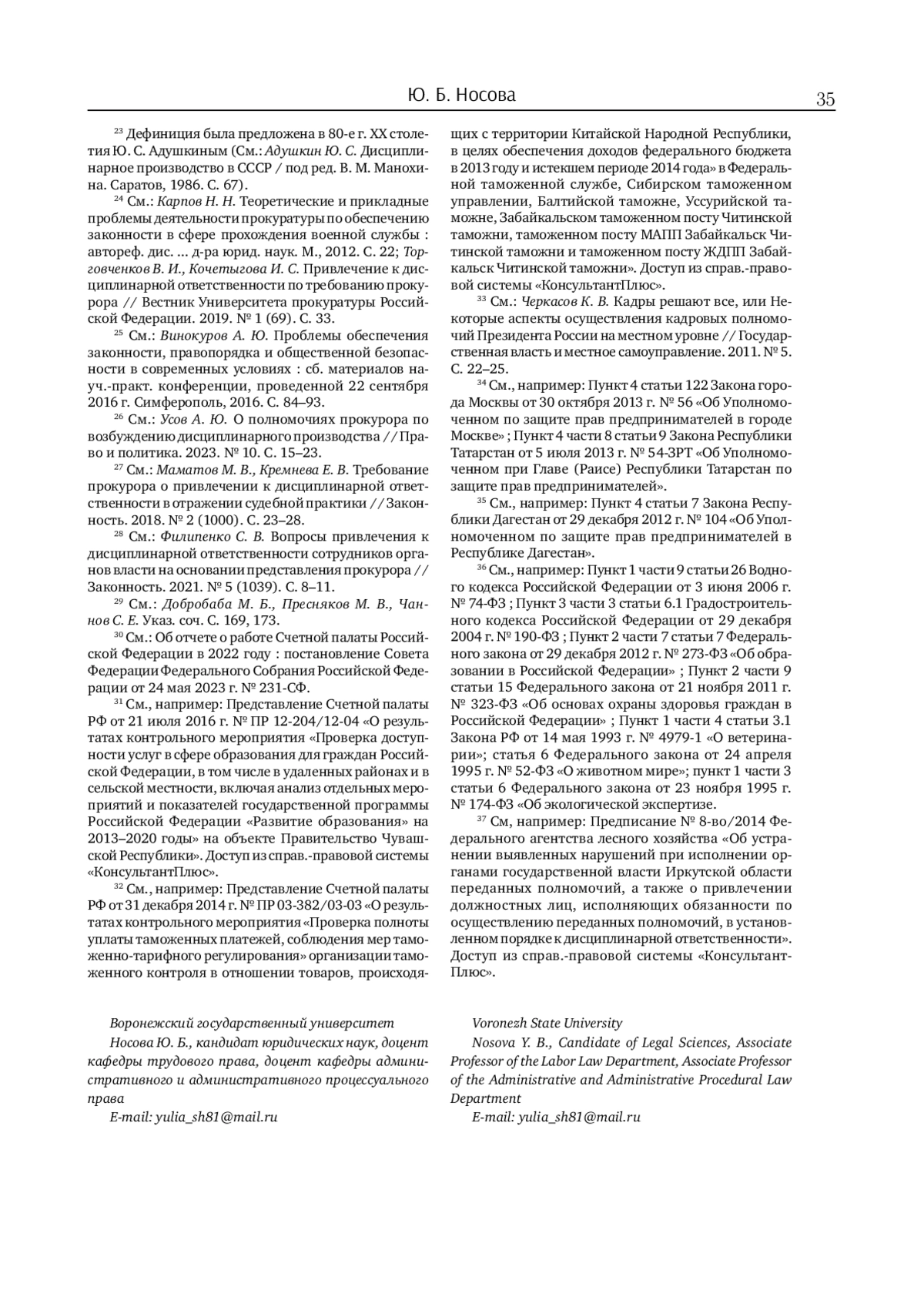 33. Усов А. Ю. О полномочиях прокурора по возбуждению дисциплинарного производства // Право и политика. 2023. № 10. С. 15-23. EDN: UGMOFI