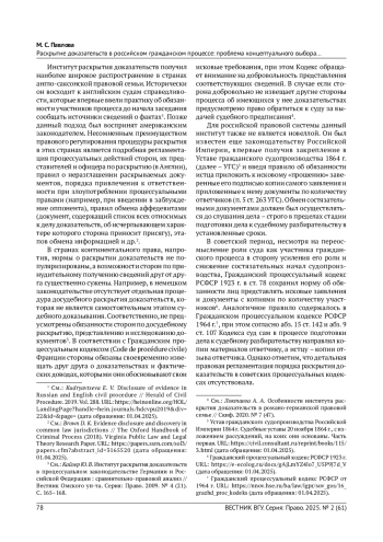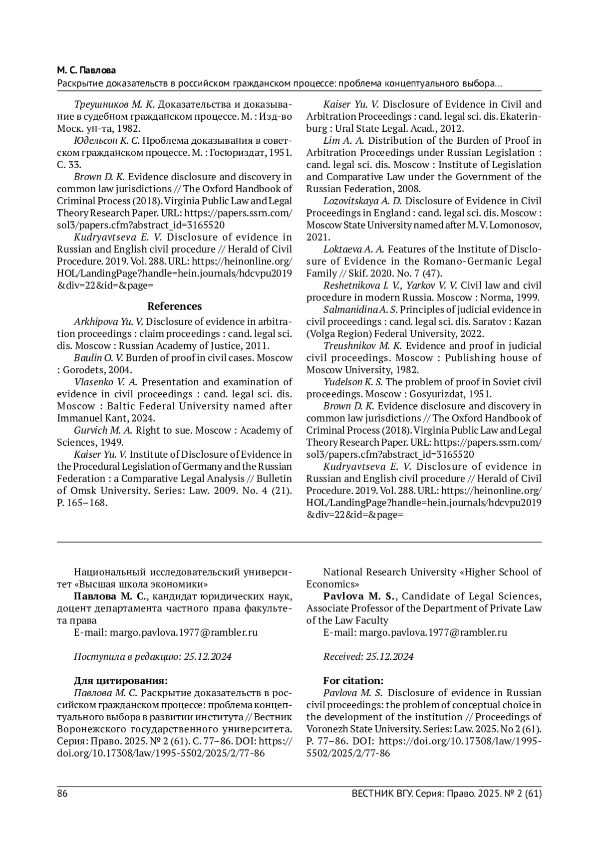 15. Kudryavtseva E. V. Disclosure of evidence in Russian and English civil procedure // Herald of Civil Procedure. 2019. Vol. 288. URL: https://heinonline.org/HOL/LandingPage?handle=hein.journals/hdcvpu2019 &div=22&id=&page=.