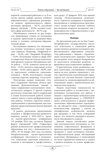 1. Кудрявцева М. Е., Лебедева С. С., Платонова Ю. Ю. Образование людей с инвалидностью в контексте использования стратегических коммуникаций в условиях неопределённости // Человек и образование. 2022. № 1(70). C. 81-90.
