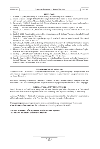 7. Ennis R.H. Critical thinking and subject specificity: Clarification and needed research // Educational Researcher. 1989. Vol. 18. No. 3. P. 4-10.