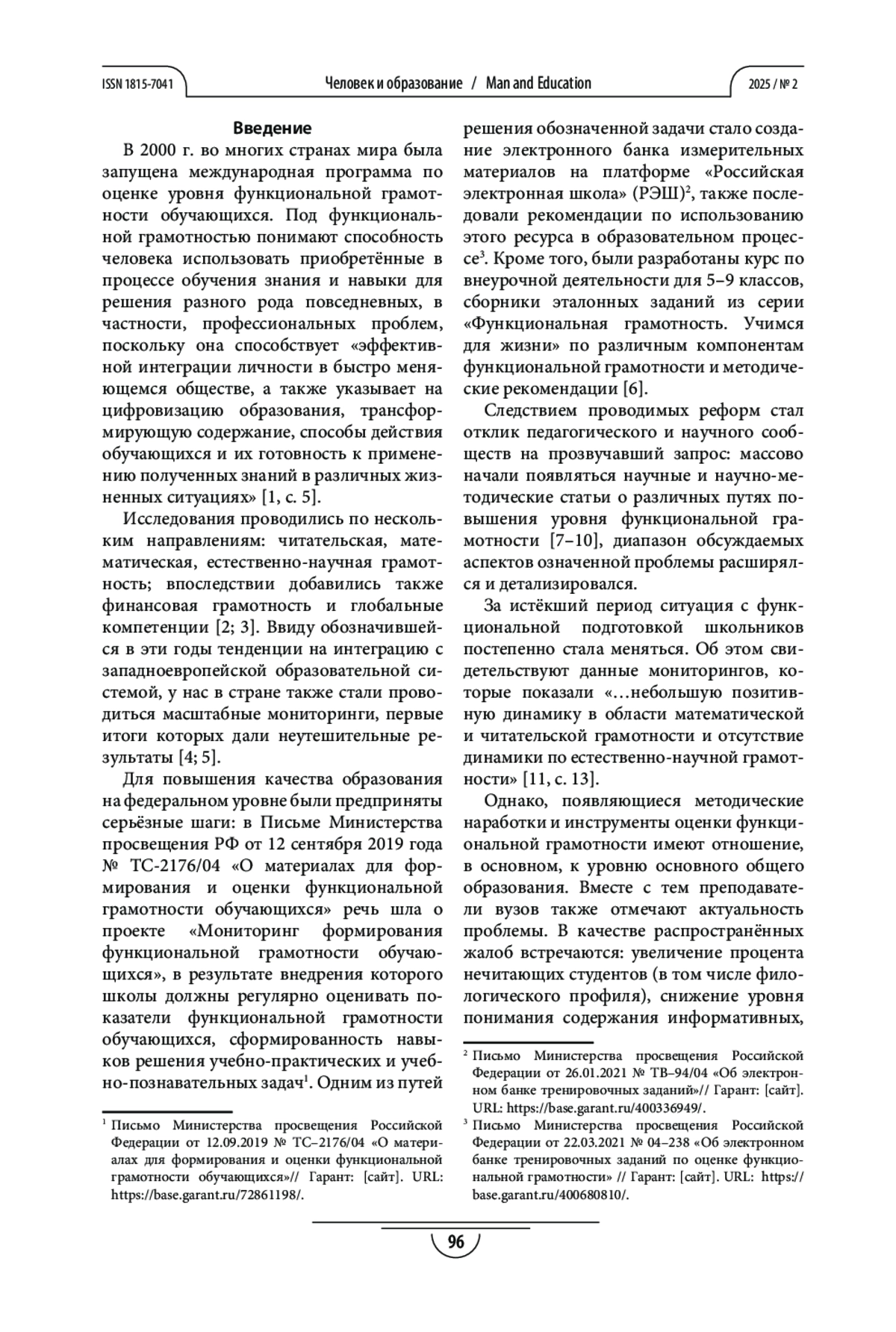 10. Пакина Т.А. Развитие функциональной грамотности и формирование понятия «функциональная грамотность» в России // Вестник педагогических наук. 2022. № 5. С. 201-206.