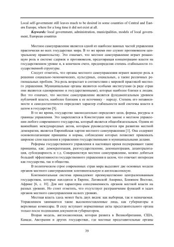В данной статье анализируется опыт некоторых стран Европы в области местного самоуправления. Администрации муниципалитетов при осуществлении своей деятельности затрагивают важнейшие аспекты жизни граждан, касающиеся каждого человека на конкретной территории. Это и порождает необходимость в создании и поиске наиболее эффективной модели муниципалитета сегодня. Проведя сравнительный анализ европейского опыта в данной сфере, автор приходит к выводу, что во всех моделях местного самоуправления видится наличие автономности самоуправляющихся территориальных единиц (сообществ, коммун, муниципалитетов, графств, префектур и проч.), которые взаимодействуют друг с другом на основании распределения между ними соответствующих полномочий и компетенций. Способ применения принципа местного самоуправления сильно варьируется от одной страны к другой, в зависимости от их истории и традиций. Местное самоуправление все еще оставляет желать лучшего в некоторых странах Центральной и Восточной Европы, где долгое время его вообще не было.