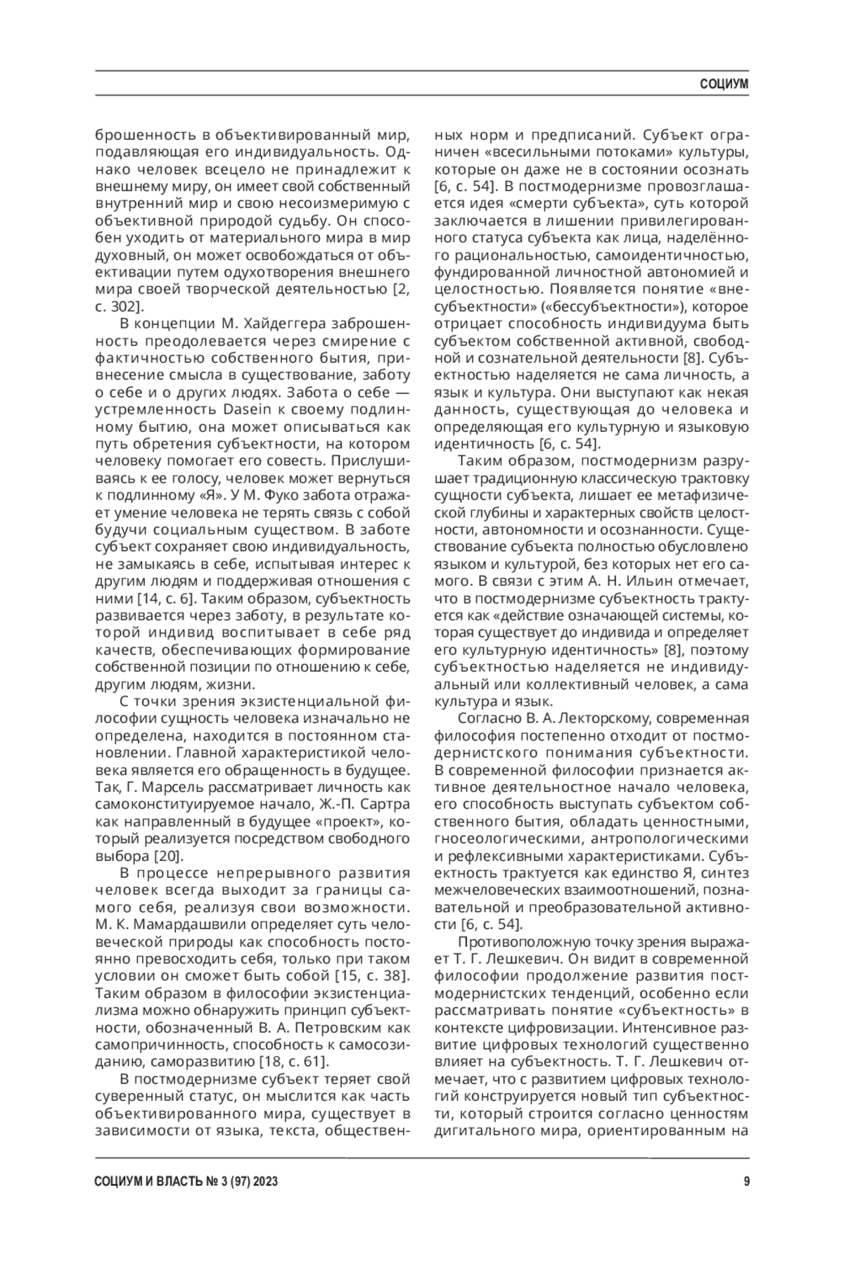 14. Лешкевич, Т. Г. Переоткрытие субъектности: точки роста новых ценностей / Т. Г. Лешкевич, Д. А. Зубова // Научная мысль Кавказа. - 2010. - № 2 (62). - С. 5-11. EDN: MVLNYN