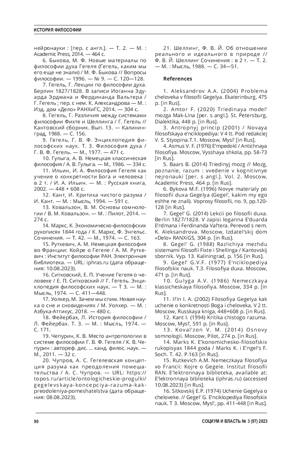 20. Чупров, А. С. Гегелевская концепция разума как преодоления помешательства / А. С. Чупров. - URL: https://topos.ru/article/ontologicheskie-progulki/gegelevskaya-koncepciya-razuma-kakpreodoleniya-pomeshatelstva (дата обращения: 08.08.2023).