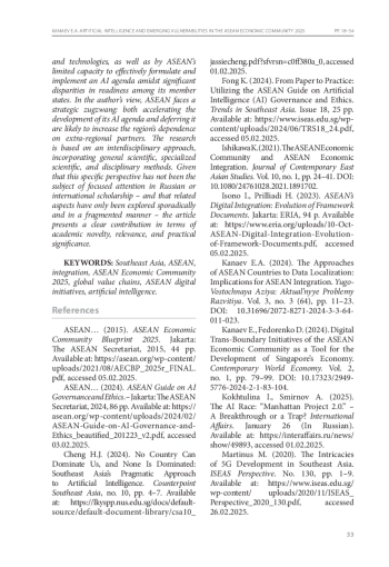 5. Fong K. From Paper to Practice: Utilizing the ASEAN Guide on Artificial Intelligence (AI) Governance and Ethics // Trends in Southeast Asia. - 2024. - Issue 18. - 25 p. - URL: https://www.iseas.edu.sg/wpcontent/uploads/2024/06/TRS18_24.pdf (дата обращения: 05.02.2025).