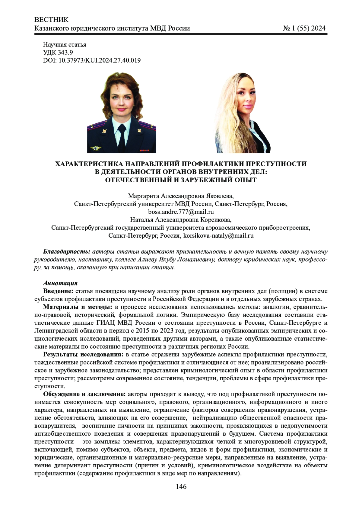 Материалы и методы: в основе проведенного исследования - диалектический метод познания действительности; авторами применялись общенаучные и частнонаучные методы (опрос, анкетирование, логический, формально-юридический, системно-структурный анализ). Использовались труды известных ученых в области социологии, психологии, криминологии, педагогики.
