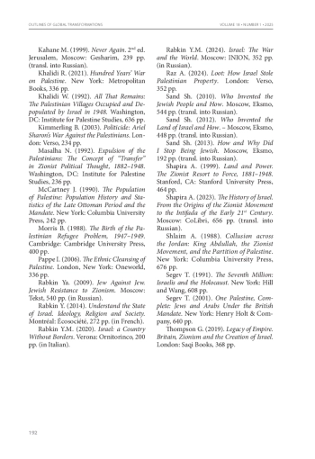 23. Rabkin Y. Comprendre l’État d’Israël Idéologie, religion et société - Montréal : Écosociété, 2014. - 272 p. - Франц. яз.