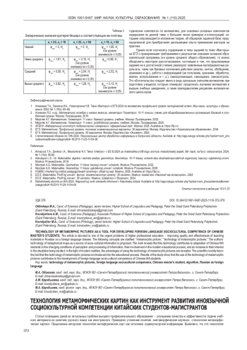 Статья: ТЕХНОЛОГИЯ МЕТАМОРФИЧЕСКИХ КАРТИН КАК ИНСТРУМЕНТ РАЗВИТИЯ ИНОЯЗЫЧНОЙ СОЦИОКУЛЬТУРНОЙ КОМПЕТЕНЦИИ КИТАЙСКИХ СТУДЕНТОВ- МАГИСТРАНТОВ (2025)