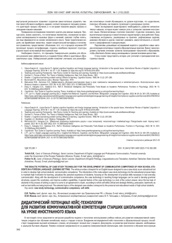 12. Игумнова О.В. Case study в системе обучения профессионально ориентированному иностранному языку в высшей школе. Вестник Самарского государственного технического университета. Серия: Психолого-педагогические науки. 2020; Т. 17, № 2: 98-110. DOl:. DOI: 10.17673/vsgtu-pps.2020.2.8 EDN: WQLBZA