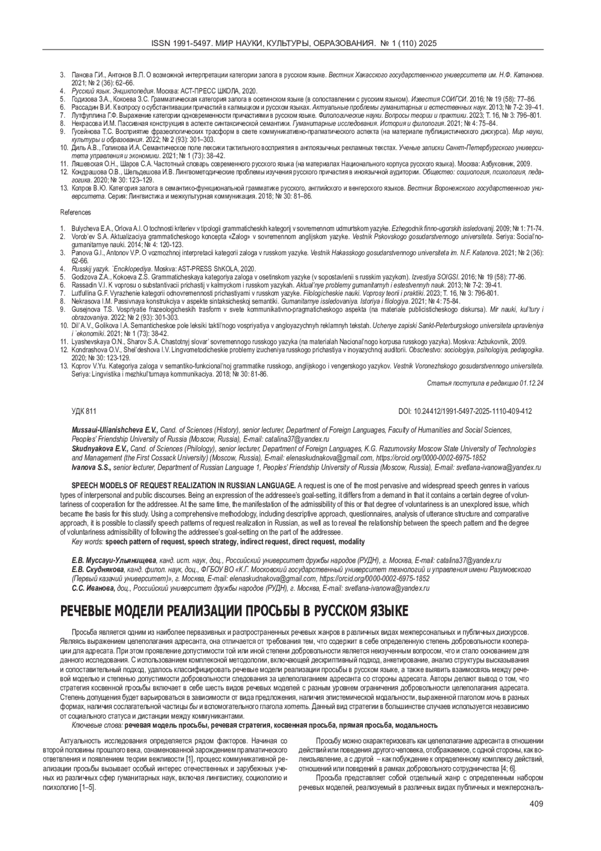 5. Модже Д.Х. Просьба в современной русской речи в непрямой форме. Вестник РУДН. Серия: Теория языка. Семиотика. Семантика. 2014; № 3: 175-182.