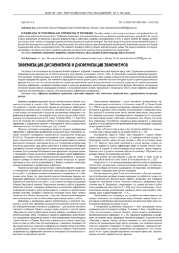 Настоящая статья посвящена исследованию явлений эвфемии и дисфемии с позиции смысловой инверсии между ними. Традиционно дисфемизмы и эвфемизмы рассматривались как противоположные друг другу явления, восходящие к понятию «табу». В самом общем понимании эвфемизмы определяются как ресурс, призванный скрыть или смягчить табуированную лексику, а дисфемизм, в свою очередь, используется для усиления негативной смысловой нагрузки табуированных единиц. Тем не менее по мере развития языка в целом и данных явлений в частности они давно вышли за рамки вышеупомянутых функций, вплоть до того, что стали использоваться в прямо противоположных целях. В представленной статье анализу подвергаются случаи использования испанских эвфемизмов с дисфемистическими целями и испанских дисфемизмов, выполняющих эвфемистическую функцию. Материалом исследования послужили художественные произведения испанских и латиноамериканских авторов. Выявленные в литературном тексте случаи эвфемии и дисфемии позволили систематизировать и описать цели использования эвфемизмов и дисфемизмов.