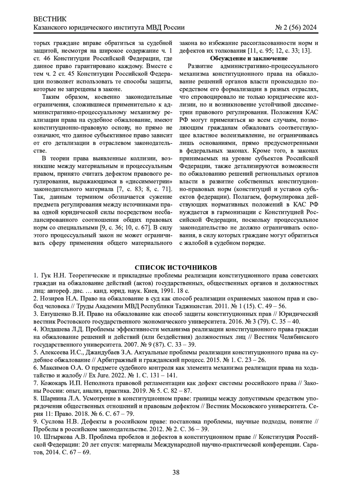 2. Нозиров Н.А. Право на обжалование в суд как способ реализации охраняемых законом прав и свобод человека // Труды Академии МВД Республики Таджикистан. 2011. № 1 (15). С. 49 - 56. EDN: VZZKBH