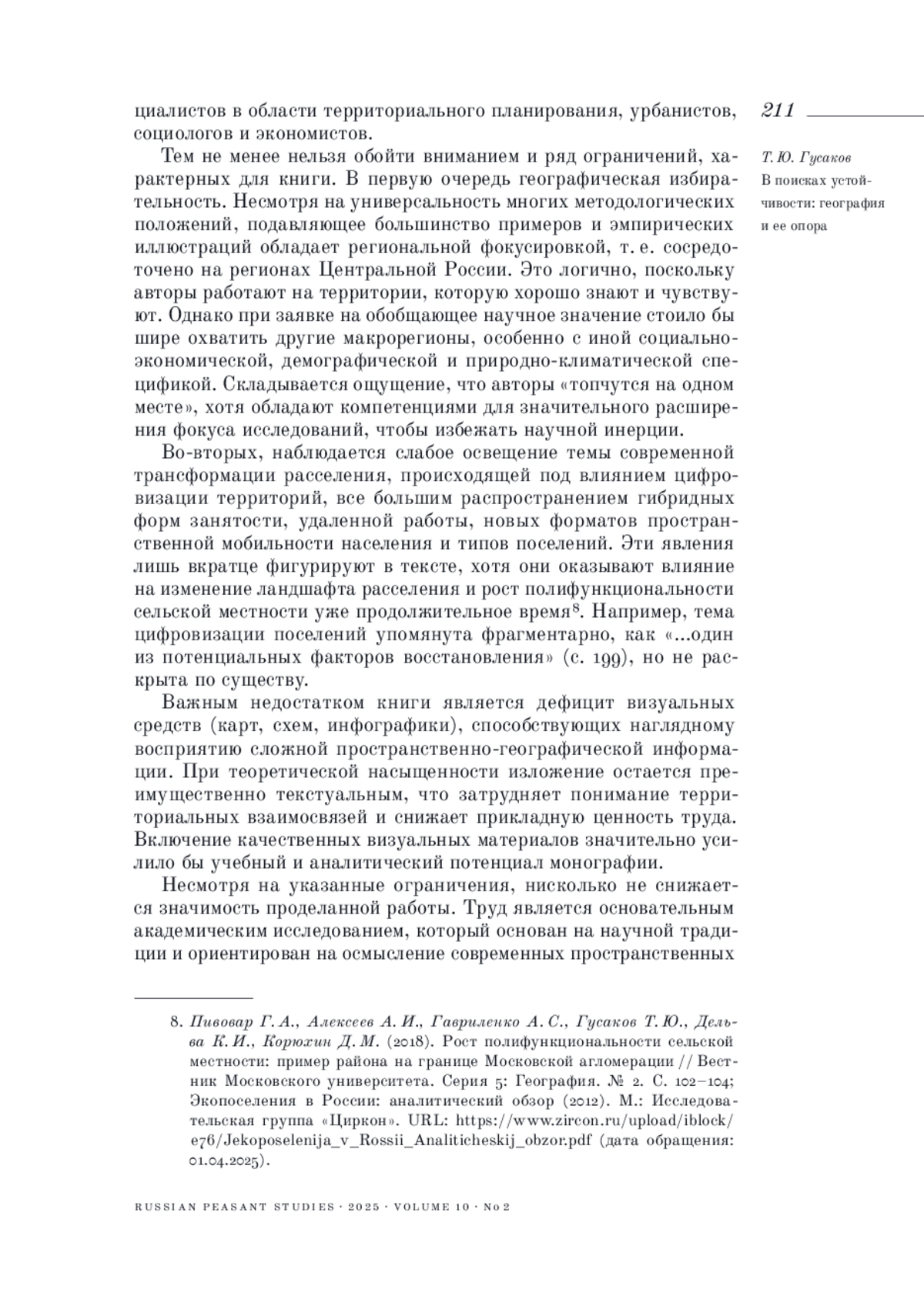 6. Савоскул М. С., Алексеев А. И. (2019). Сельско-городские сообщества в официально несуществующем населенном пункте // Вестник Московского университета. Серия 5: География. № 4. С. 119-123. EDN: PTPVLV