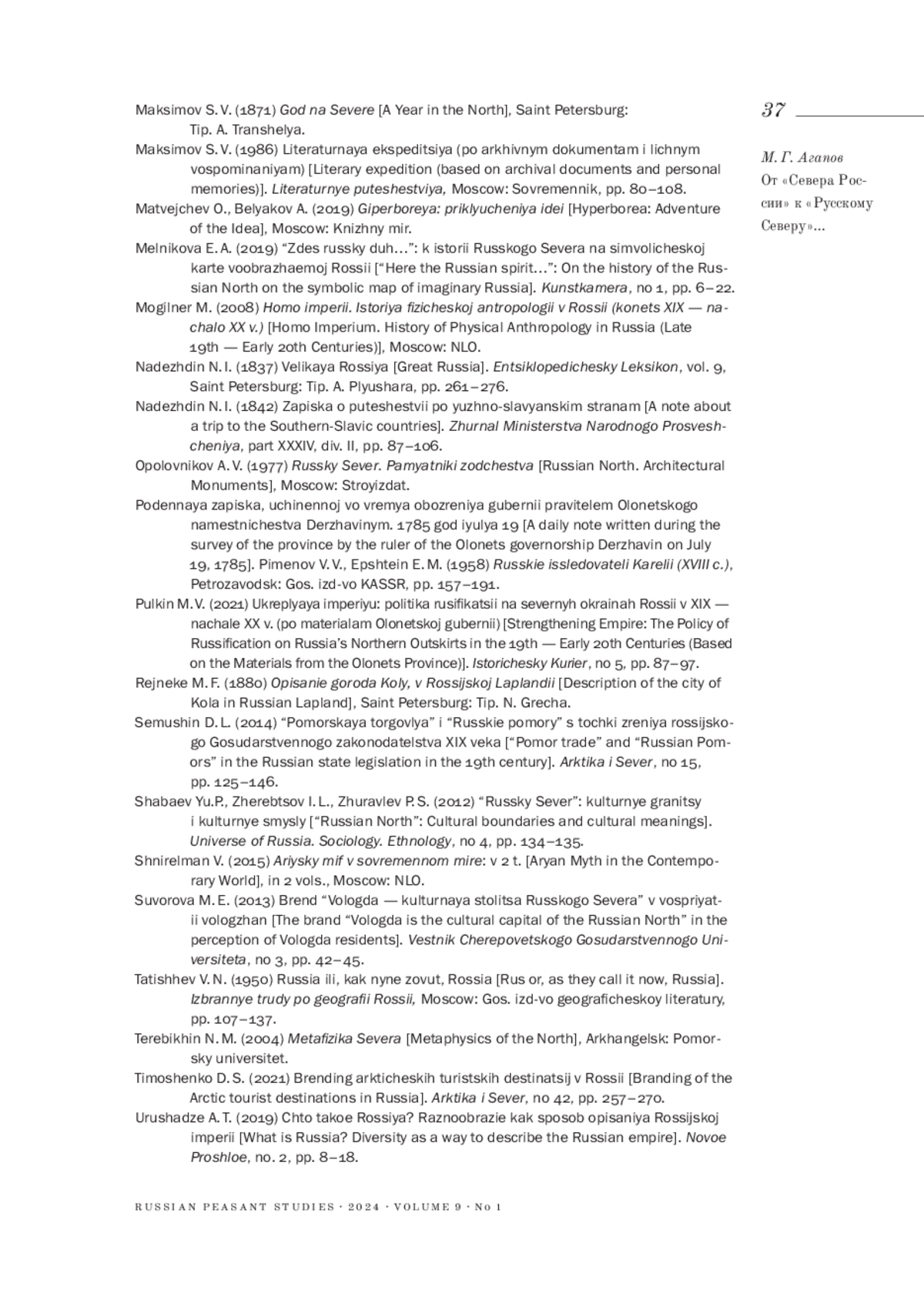 40. Шабаев Ю. П., Жеребцов И. Л., Журавлев П. С. (2012). “Русский Север”: культурные границы и культурные смыслы // Мир России. Социология. Этнология. № 4. С. 134-135. EDN: PEBAVX