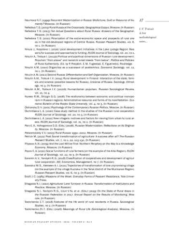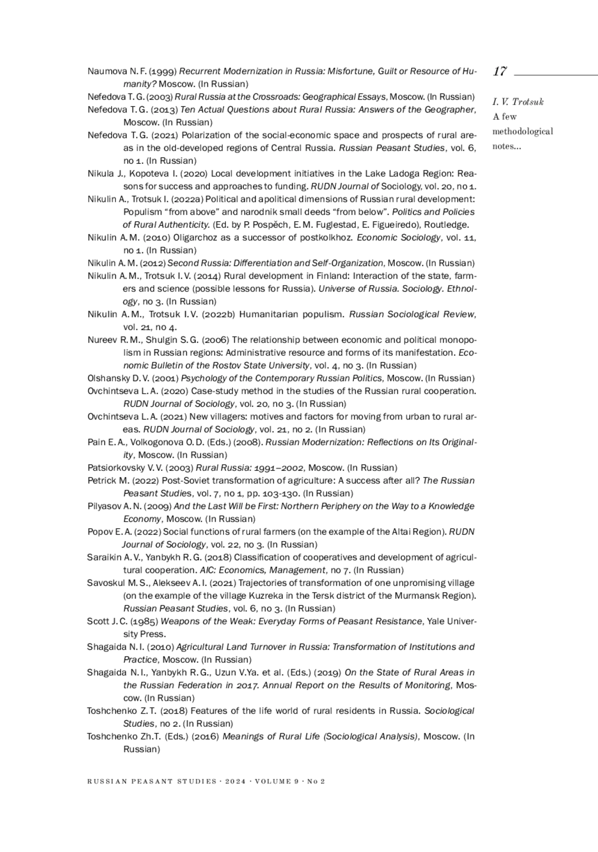 46. Patsiorkovsky V. V. (2003) Rural Russia: 1991-2002, Moscow. (In Russian).