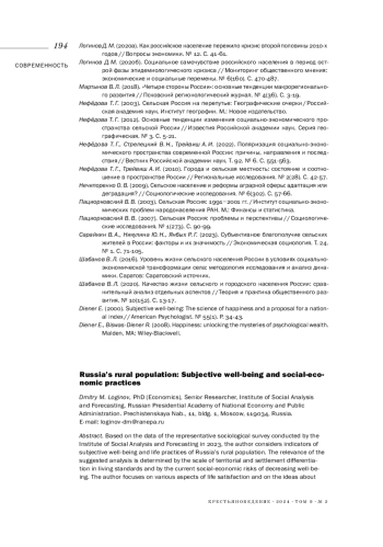 14. Логинов Д. М. (2020б). Социальное самочувствие российского населения в период острой фазы эпидемиологического кризиса // Мониторинг общественного мнения: экономические и социальные перемены. № 6(160). С. 470-487. EDN: SZRTVA