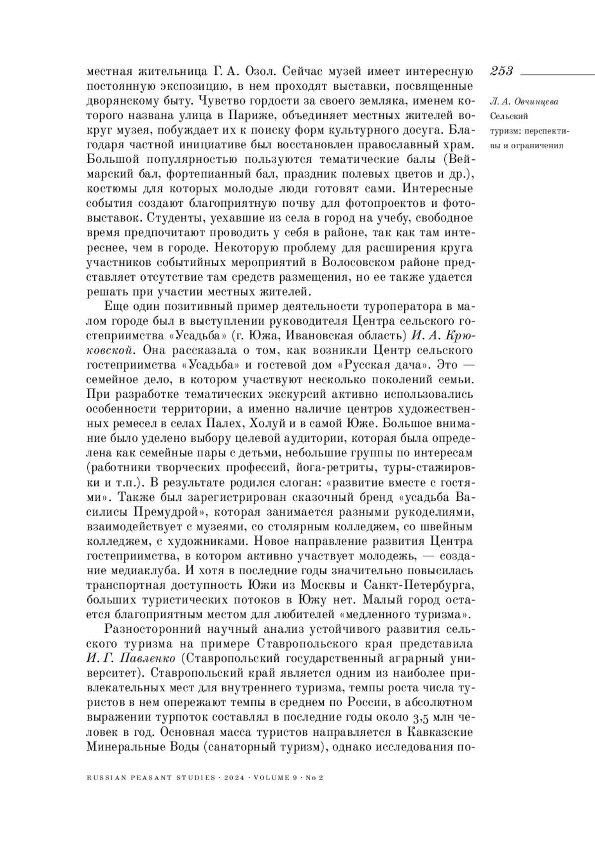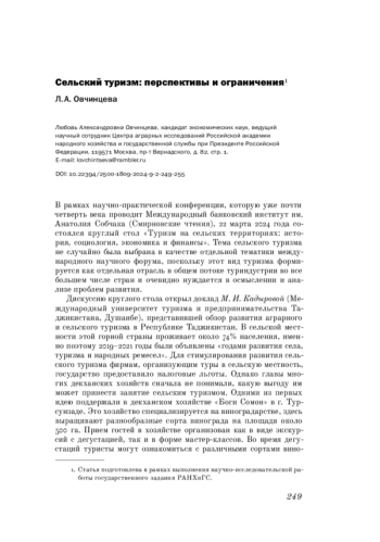 В рамках научно-практической конференции, которую уже почти четверть века проводит Международный банковский институт им. Анатолия Собчака (Смирновские чтения), 22 марта 2024 года состоялся круглый стол «Туризм на сельских территориях: история, социология, экономика и финансы». Тема сельского туризма не случайно была выбрана в качестве отдельной тематики международного научного форума, поскольку этот вид туризма формируется как отдельная отрасль в общем потоке туриндустрии во все большем числе стран и очевидно нуждается в осмыслении и анализе проблем развития.