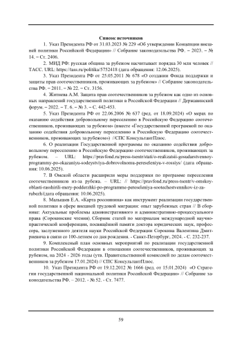 7. В Омской области расширили меры поддержки по программе переселения соотечественников из-за рубежа. - URL: // https://pravfond.ru/press-tsentr/v-omskoy-oblasti-rasshirili-mery-podderzhki-po-programme-pereseleniya-sootechestvennikov-iz-za-rubezh/(дата обращения: 10.06.2025).