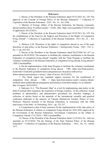 6. О реализации Государственной программы по оказанию содействия добровольному переселению в Российскую Федерацию соотечественников, проживающих за рубежом. - URL: https://pravfond.ru/press-tsentr/stati/o-realizatsii-gosudarstvennoy-programmy-po-okazaniyu-sodeystviya-dobrovolnomu-pereseleniyu-v-rossiys/(дата обращения: 10.06.2025).