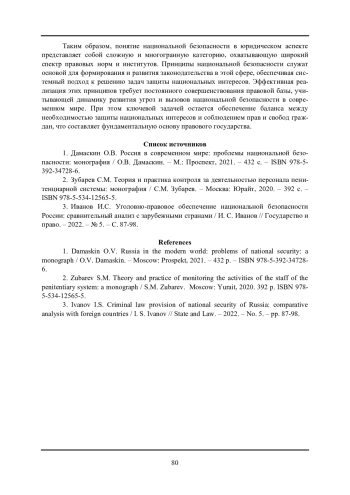 3. Иванов И.С. Уголовно-правовое обеспечение национальной безопасности России: сравнительный анализ с зарубежными странами / И. С. Иванов // Государство и право. - 2022. - № 5. - С. 87-98.