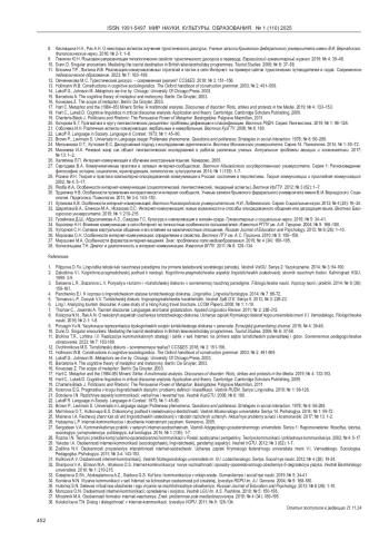 11. Блохина Т.Р., Лохтина И.В. Реализация коммуникативных стратегий и тактик в сети Интернет: на примере сайтов туристических путеводителей и гидов. Современное педагогическое образование. 2023; № 7: 183-189. EDN: ZVSGDZ