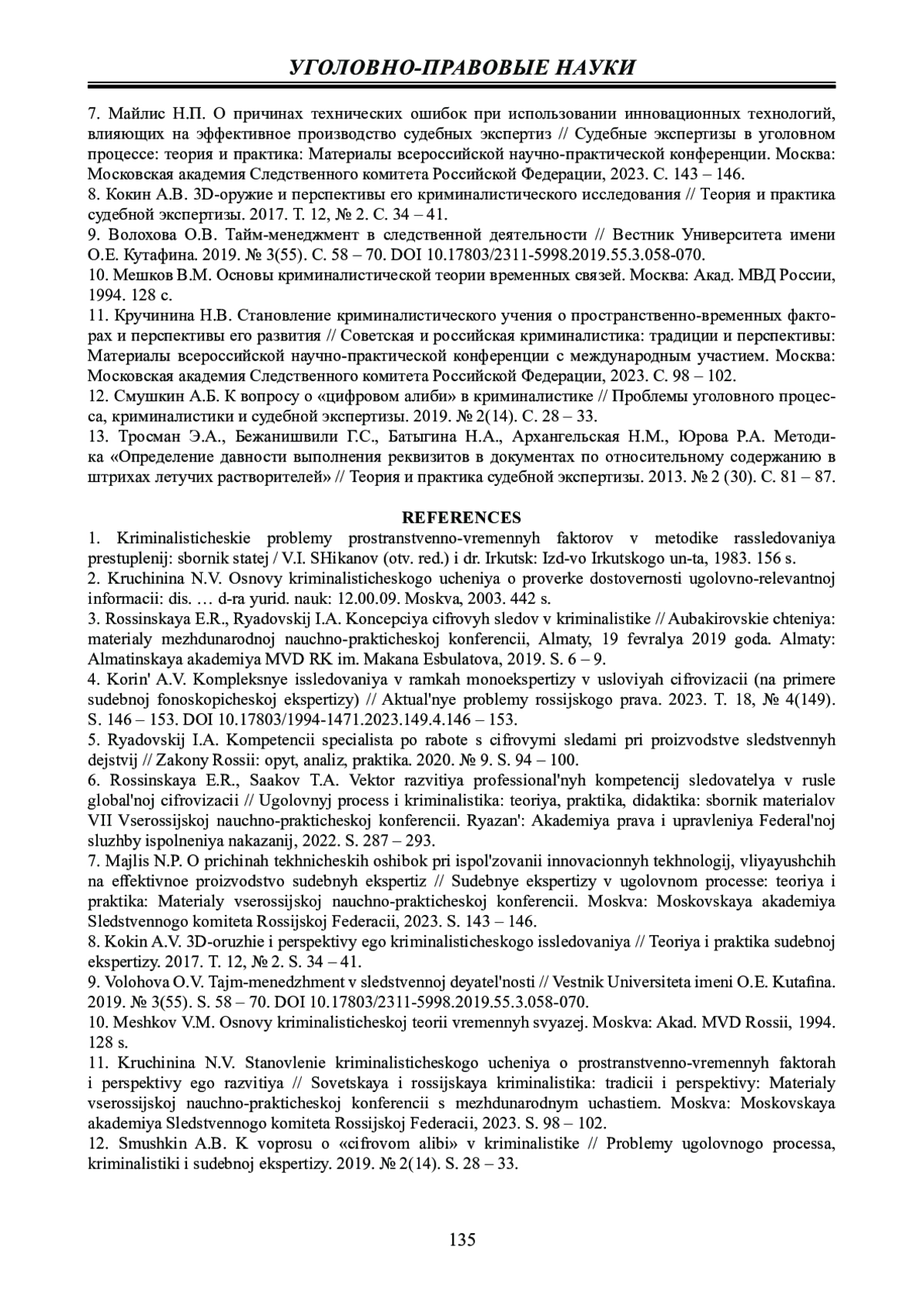 10. Мешков В.М. Основы криминалистической теории временных связей. Москва: Акад. МВД России, 1994. 128 с.