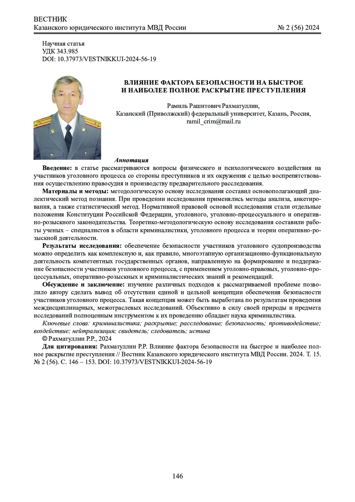 7. Мишин А.В. Криминалистическое обеспечение безопасности участников уголовного судопроизводства: монография. Москва: Юрлитинформ, 2023. 168 с. EDN: IKMABS
