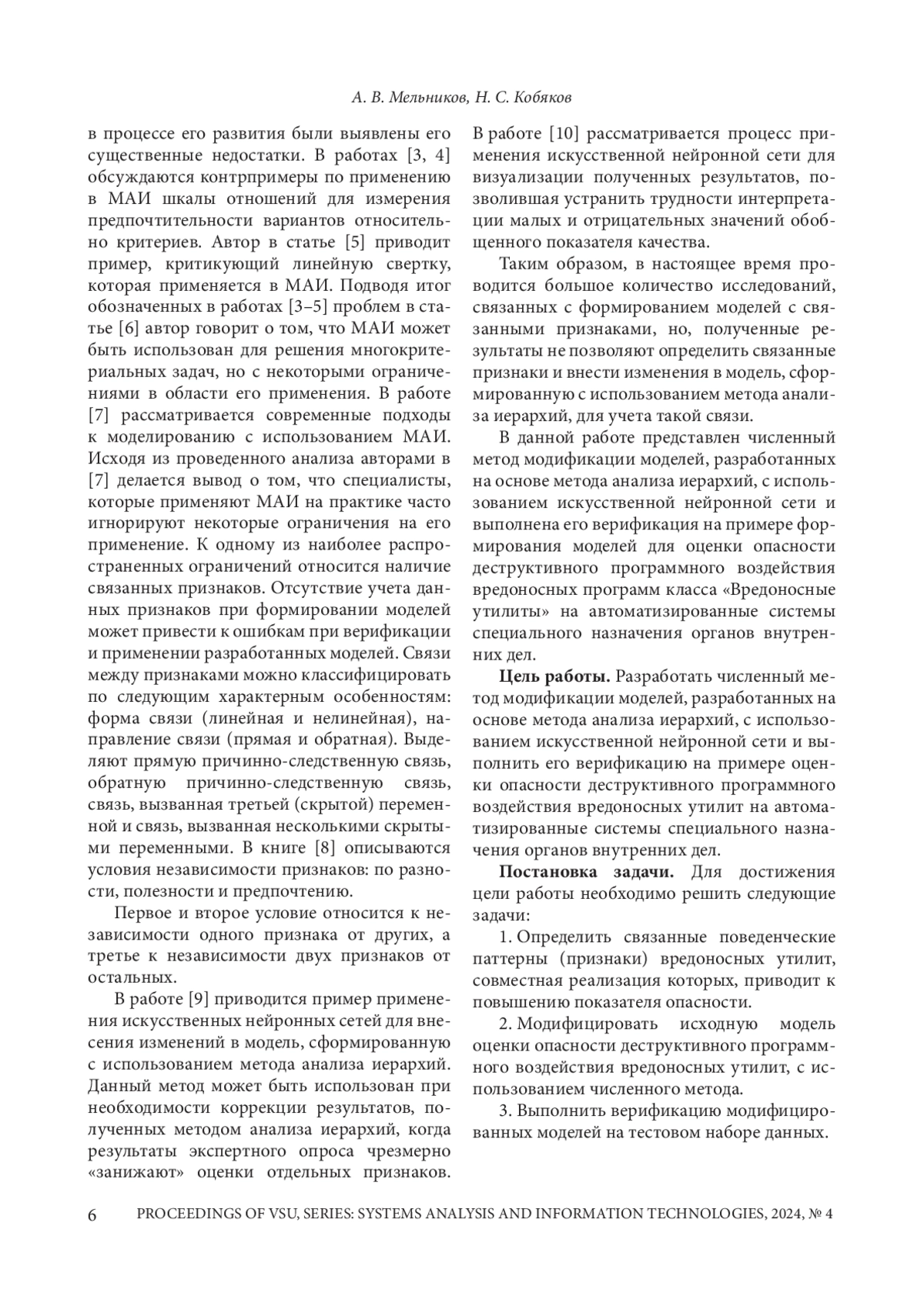 9. Мельников А. В. Коррекция результатов анализа иерархий функциональных возможностей интегрированных систем безопасности методом ассоциативного обучения нейронной сети / А. В. Мельников, С. А. Мальцев, А. А. Рогожин // Вестник Воронежского института МВД России. - 2016. - № 1. - С. 52-61. EDN: VQSSPL