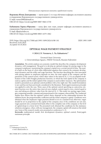 КАБАНЦОВА Л. Ю., ВОРОНОВА Ю. Д. ОПТИМАЛЬНАЯ СТРАТЕГИЯ ВЫПЛАТЫ ЗАРАБОТНОЙ ПЛАТЫ // ВЕСТНИК ВОРОНЕЖСКОГО ГОСУДАРСТВЕННОГО УНИВЕРСИТЕТА. СЕРИЯ: СИСТЕМНЫЙ АНАЛИЗ И ИНФОРМАЦИОННЫЕ ТЕХНОЛОГИИ. 2024. № 4