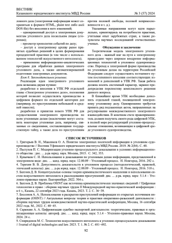 1. Григорьев В. Н., Максимов О. А. Понятие электронных носителей информации в уголовном судопроизводстве // Вестник Уфимского юридического института МВД России. 2019. № 2(84). С. 40. EDN: ZTHIHZ