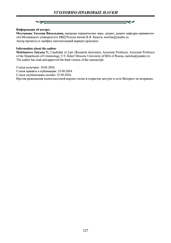 Материалы и методы: в качестве эмпирической базы использованы отдельные формы статистического наблюдения ГИАЦ МВД России за период 2013 - 2023 гг., анализ данных проведен с использованием статистического метода.