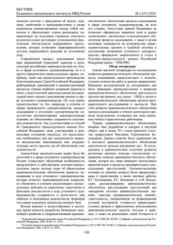 7. Бобров В.К., Вознюк Е.П. Некоторые вопросы обеспечения достаточности доказательств в досудебном уголовном судопроизводстве // Российский следователь. 2021. № 10. С. 16-19. DOI: 10.18572/1812-3783-2021-10-16-19 EDN: LYQTLG