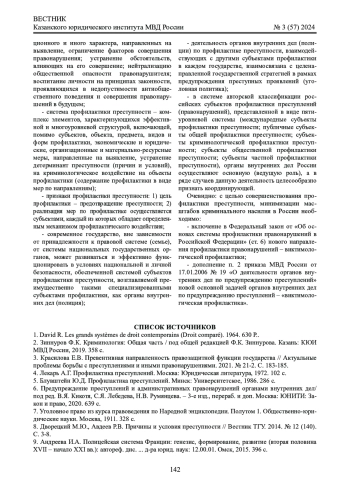 12. Кузьминых А.С. Общие проблемы предупреждения преступности // Право и государство: теория и практика. 2023. № 1 (217). С. 190-191.