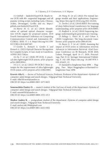 19. Li C. [et al.] PP-OCRv3: More attempts for the improvement of ultra lightweight OCR system //arXiv preprint arXiv:2206.03001. - 2022.