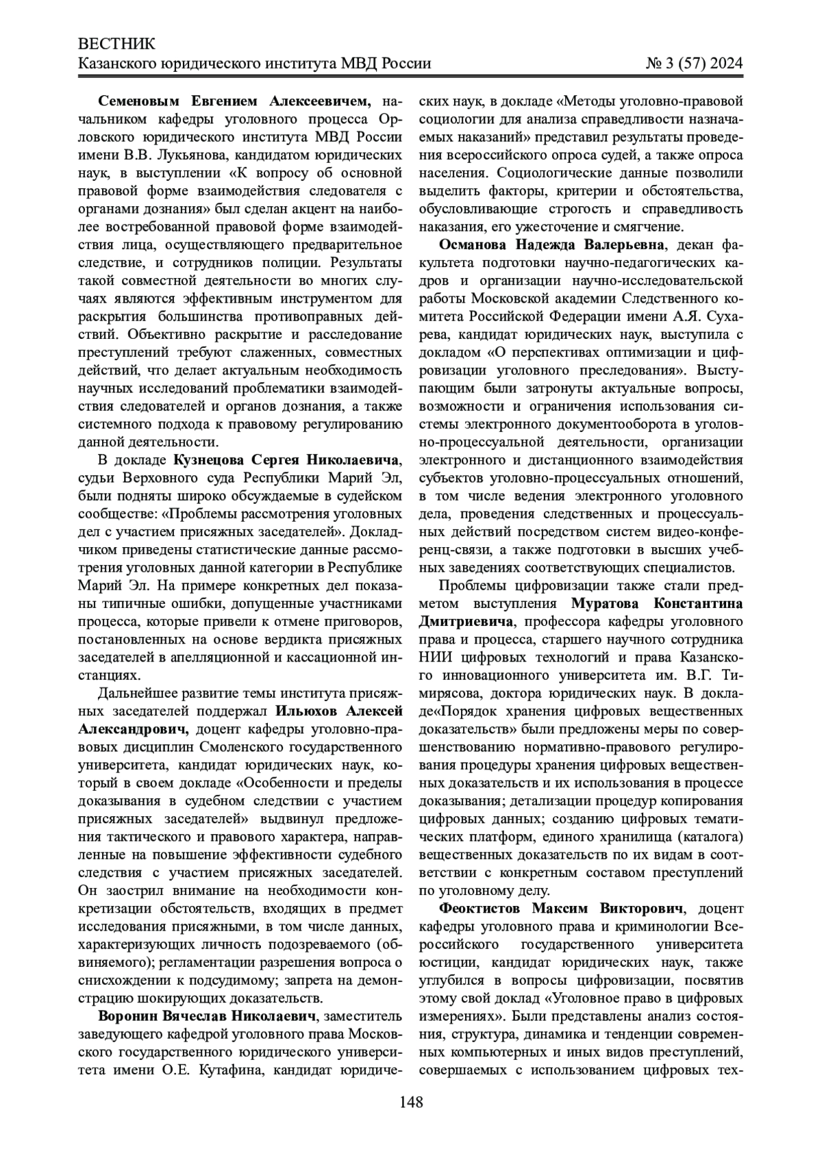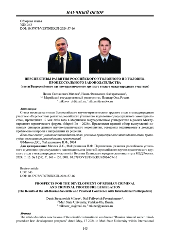 17 мая 2024 года одна из научных площадок Международного юридического форума «Марий Эл-2024», проходившего в Марийском государственном университете, была отведена проведению Всероссийского научно-практического круглого стола с международным участием на тему «Перспективы развития российского уголовного и уголовно-процессуального законодательства».