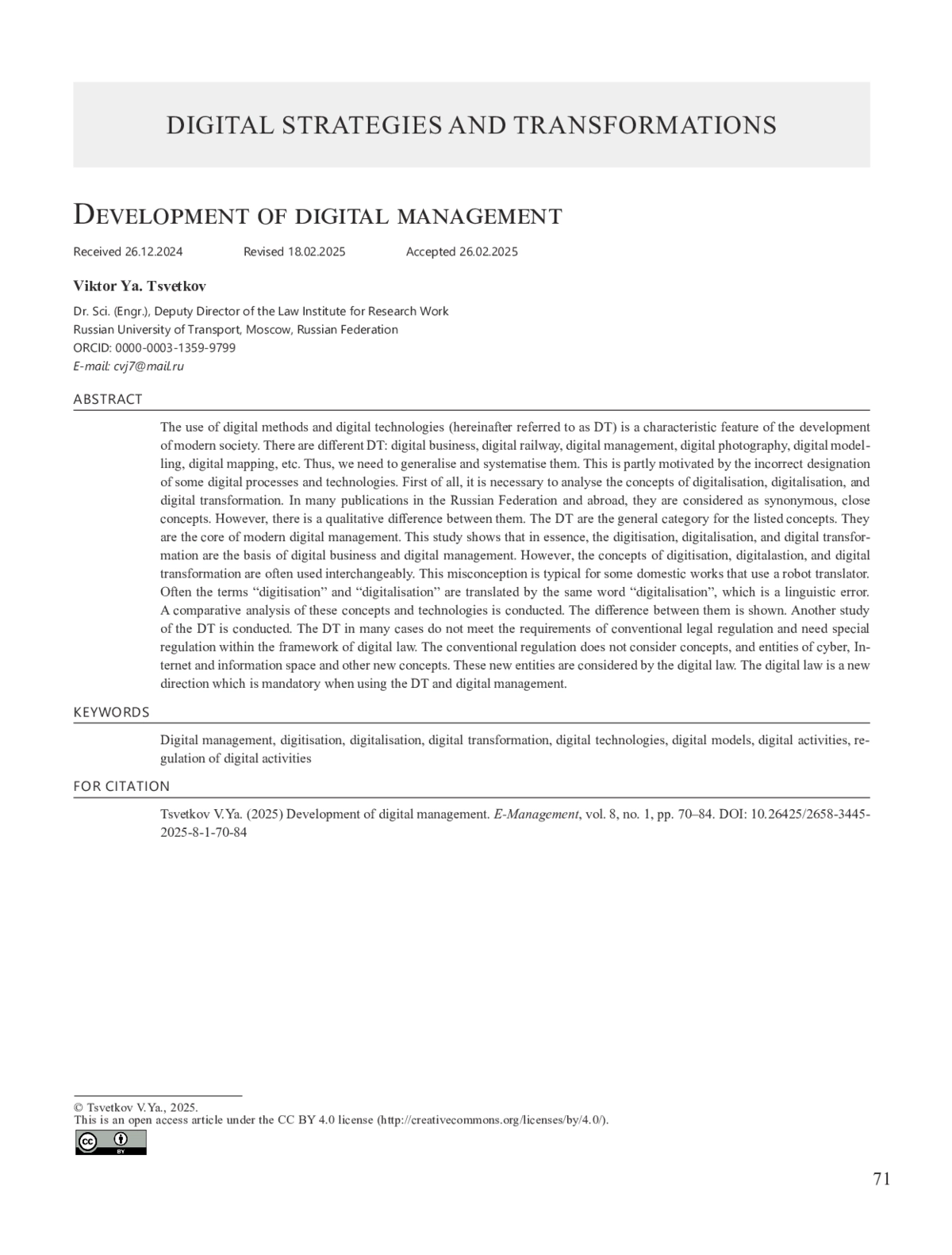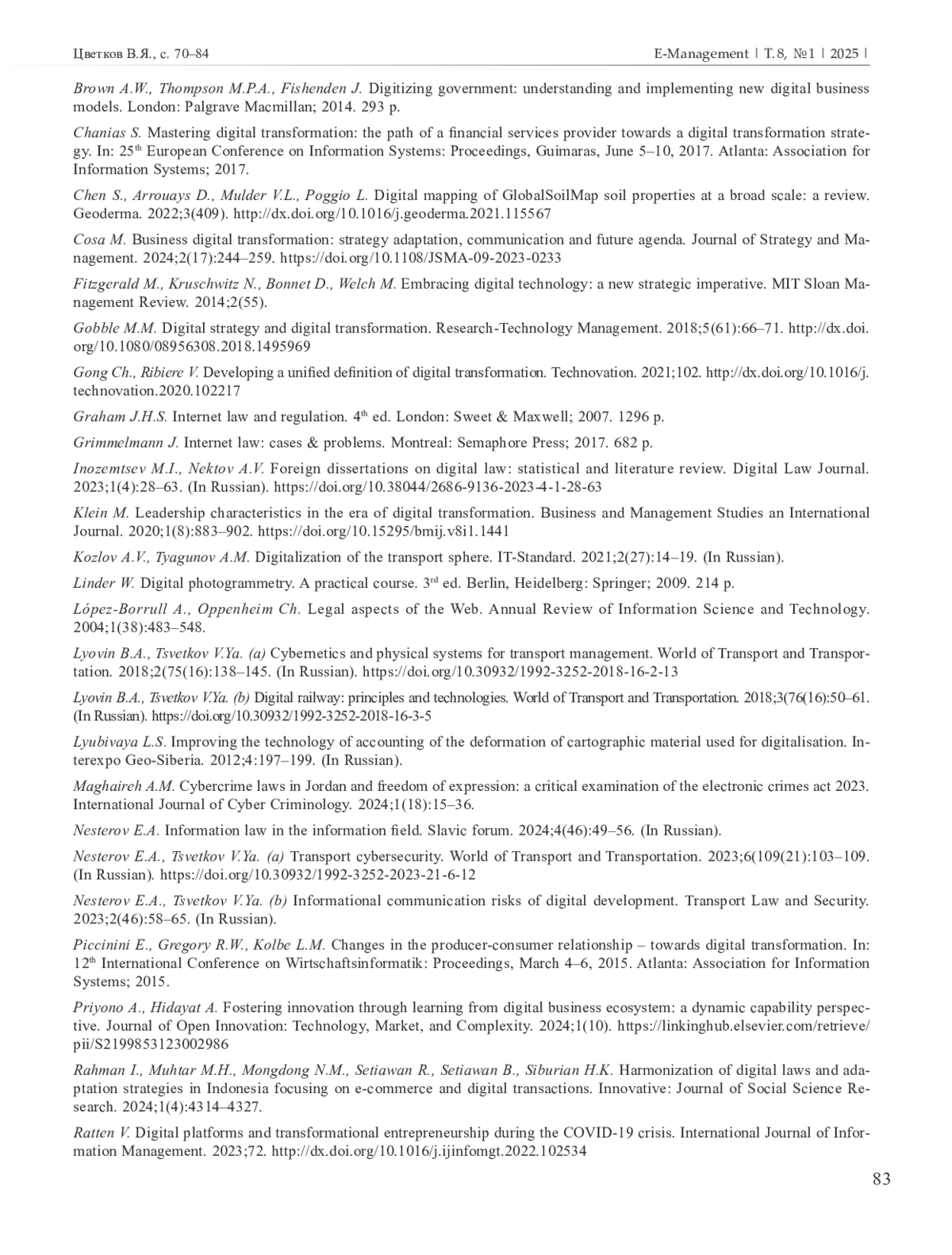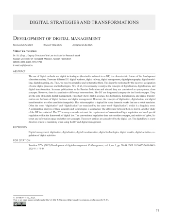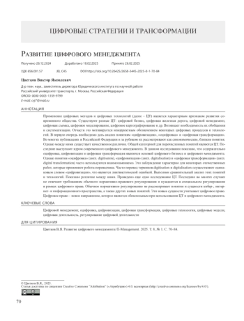 ЦВЕТКОВ В. Я. РАЗВИТИЕ ЦИФРОВОГО МЕНЕДЖМЕНТА // E-MANAGEMENT. 2025. Т. 8 № 1