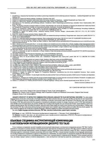 Статья посвящена исследованию языковой специфики инструктирующей коммуникации в англоязычном мотивационном дискурсе TED Talks. В работе выявляются и описываются основные языковые лингвопрагматические характеристики мотивационного дискурса TED Talks, включая особенности функционирования инструктирующей коммуникации в рамках исследуемого дискурса, представлен анализ публичных лекций TED Talks c позиции актуализации побуждения адресата к изменениям. Авторами рассмотрены публичные лекции TED Talks с позиции языковой специфики инструктирующей коммуникации, как способа мотивационного воздействия на адресата и побуждения его к изменениям. На основе анализа 15 транскриптов лекций TED Talks были выявлены около 420 целевых речевых актов и классифицированы в соответствии с языковой формой и коммуникативной функцией. Особое внимание уделяется тому, как спикеры чередуют прямые и косвенные формулировки, а также эксплицитные и имплицитные директивы, рекомендации и призывы. Результаты исследования показывают, что инструктирующая коммуникация в мотивационном дискурсе TED Talks преимущественно актуализирована косвенными, имплицитными речевыми актами. Такая особенность продиктована намерением спикера TED установить доверительные отношения с аудиторией и смягчить директивный тон обращения. Это способствует эффективному вовлечению аудитории и формированию определённых поведенческих изменений для реализации ключевых намерений мотивационных спикеров.