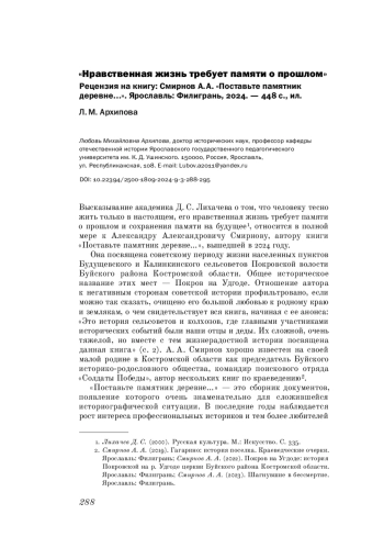 Рецензия на книгу: Смирнов А. А. «Поставьте памятник деревне…». Ярославль: Филигрань, 2024. - 448 с., ил.