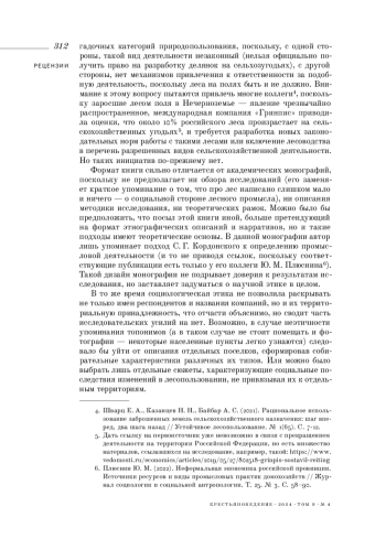 1. Аверкиева К. В. (2021). Постсоветская трансформация лесных поселков на севере Нечерноземья // Крестьяноведение. Т. 6. № 3. С. 90-110. EDN: VIBBYK