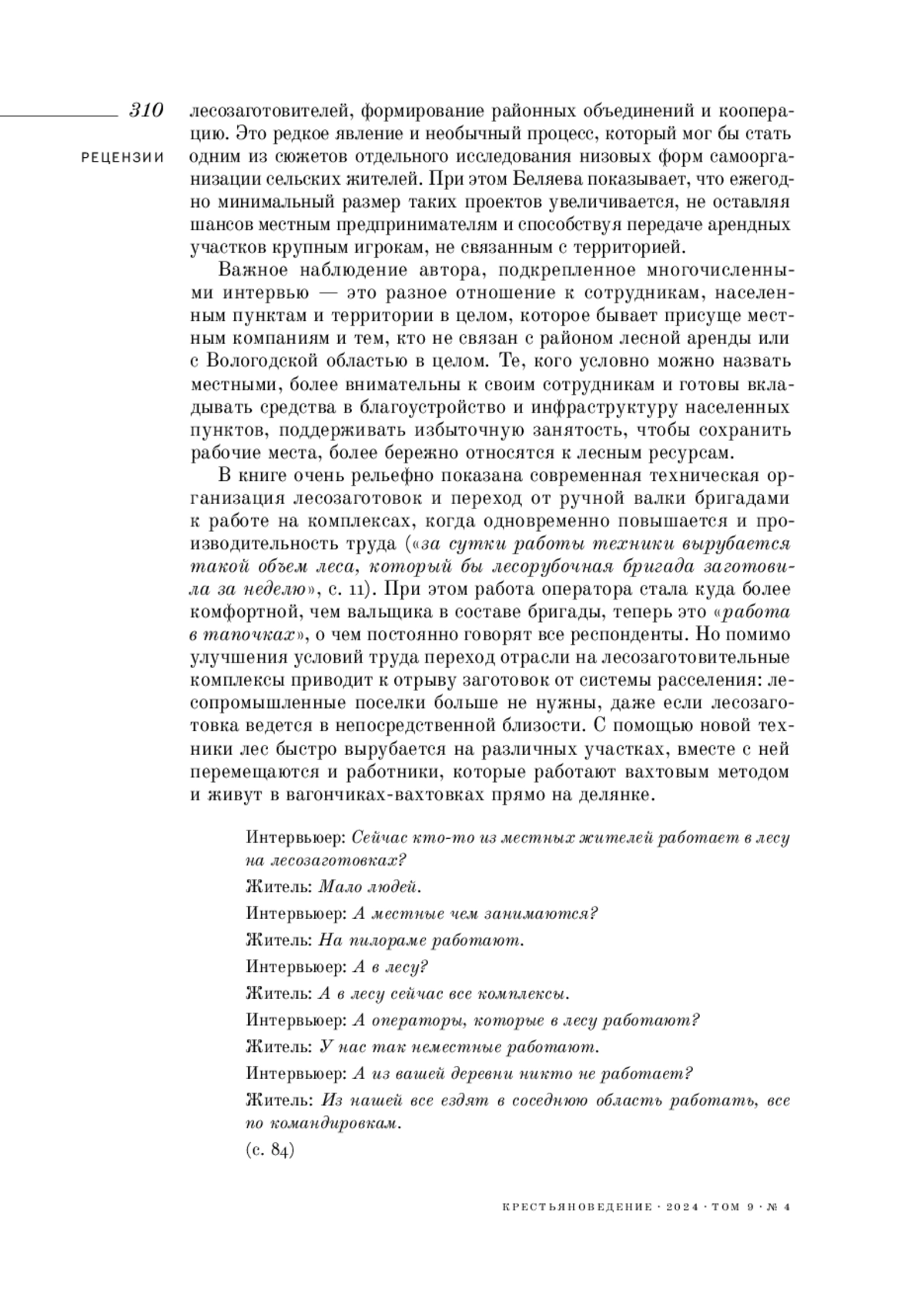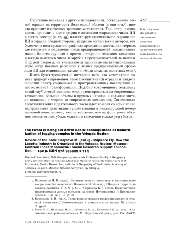 Рецензия на книгу: Беляева М. Щепки летят. Как устроен лесозаготовительный промысел на Вологодчине. М.: Common Place; фонд поддержки социальных исследований «Хамовники», 2024. - 192 с. ISBN 978-999999-1-73-5.