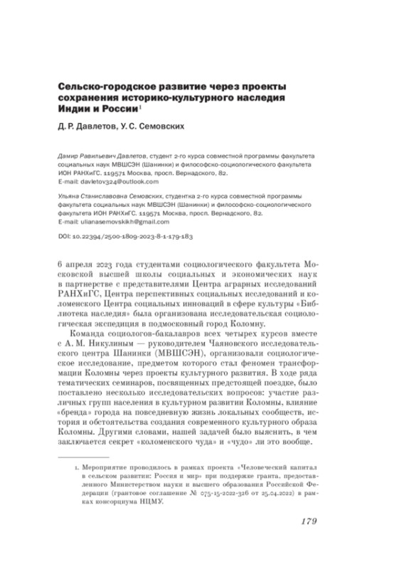 6 апреля 2023 года студентами социологического факультета Московской высшей школы социальных и экономических наук в партнерстве с представителями Центра аграрных исследований РАНХиГС, Центра перспективных социальных исследований и коломенского Центра социальных инноваций в сфере культуры «Библиотека наследия» была организована исследовательская социологическая экспедиция в подмосковный город Коломну.